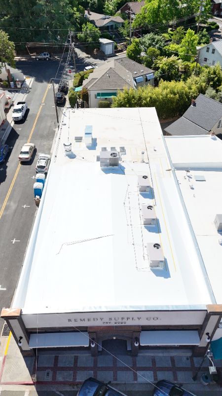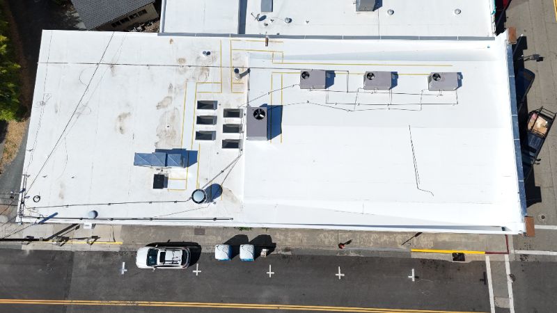 DESCRIPTION: ASN finished reroofing this exciting new restaurant in Downtown Auburn. We are proud to help this local business owner get ready to open their second restaurant in the area. ASN was able to preserve the exposed diagonal sheeting ceiling look over the bar and dining area by providing an adhered roofing system and avoiding screws poking through.